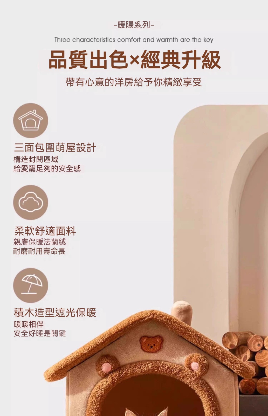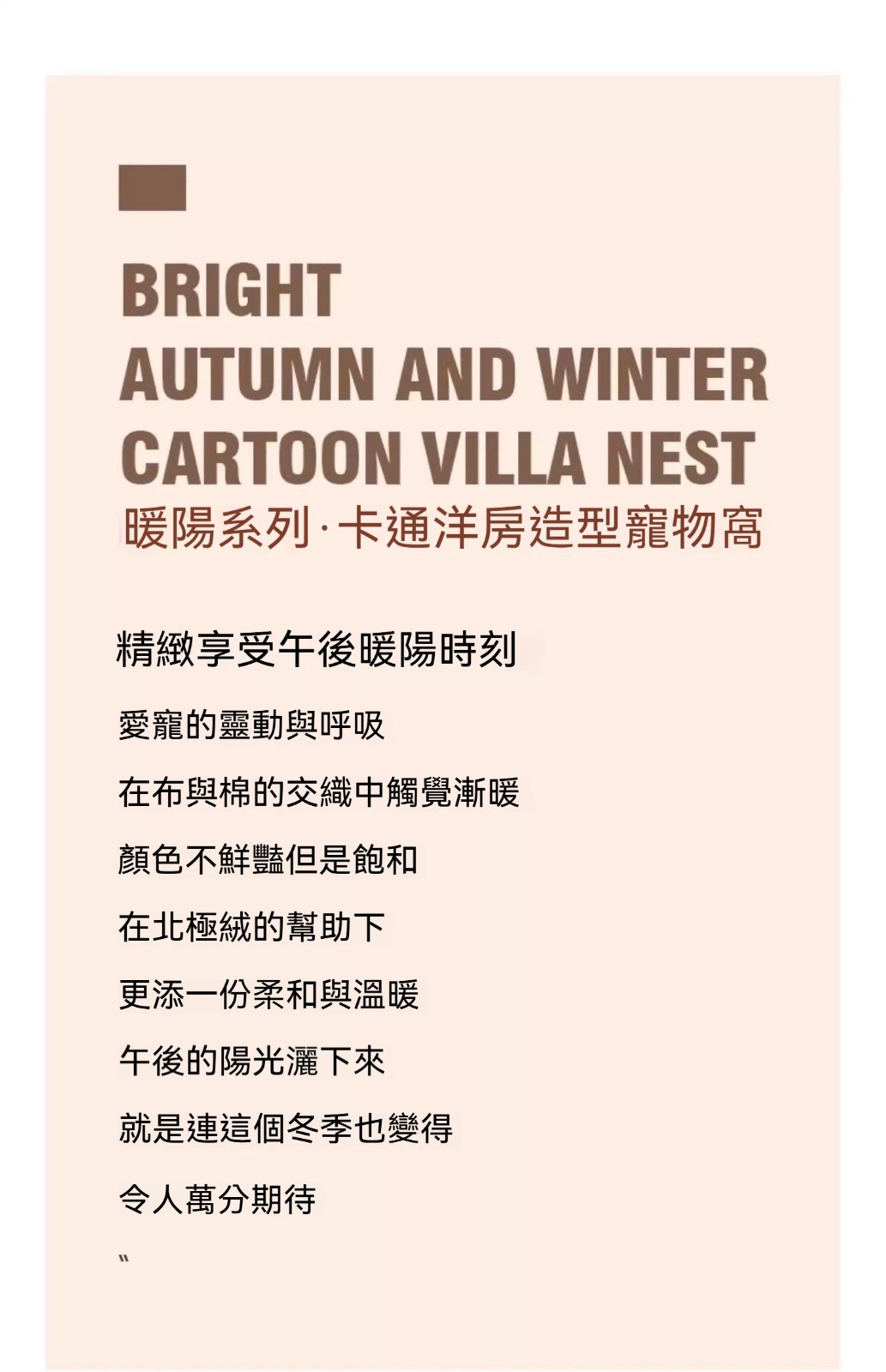 萌寵獨棟小別墅登場!「暖陽系列洋房窩」全封閉設計+北極絨內裡,主子睡到打呼都不想起床