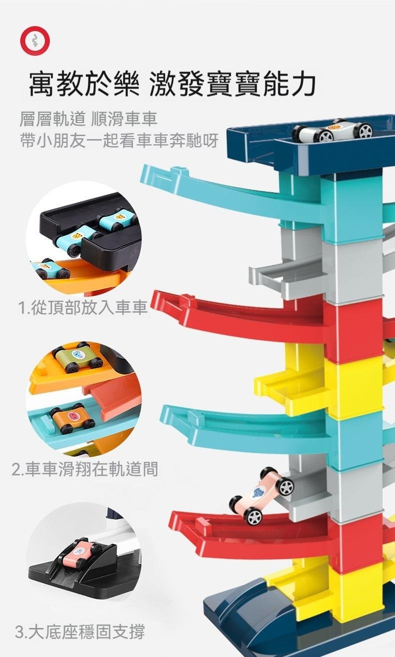 視覺衝擊+邏輯啟蒙!「9層8軌滑翔車道」讓小車飛馳而下,寶寶眼睛發亮看百遍也不膩