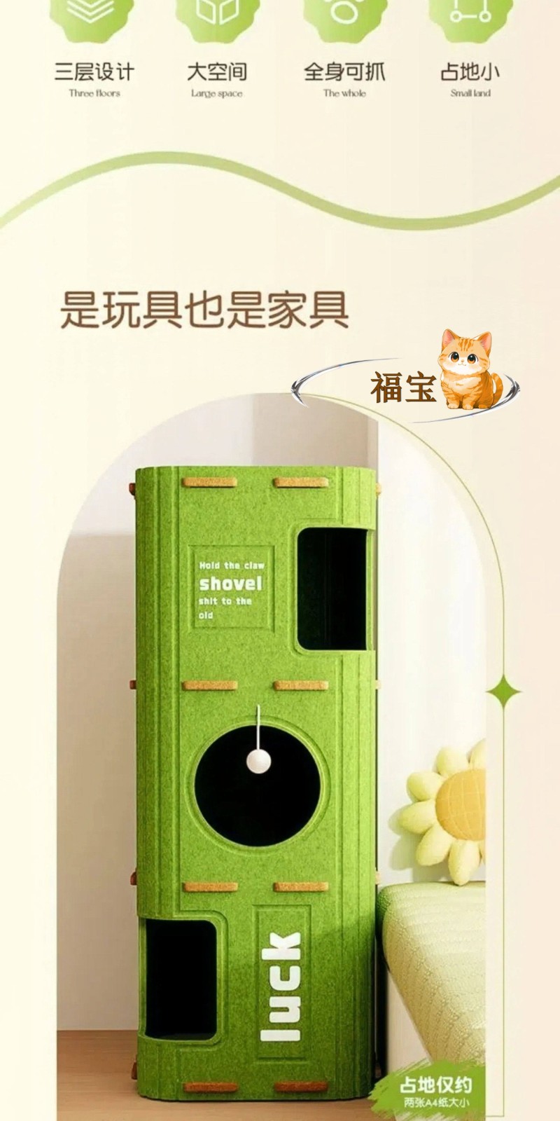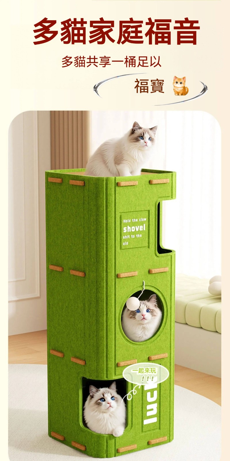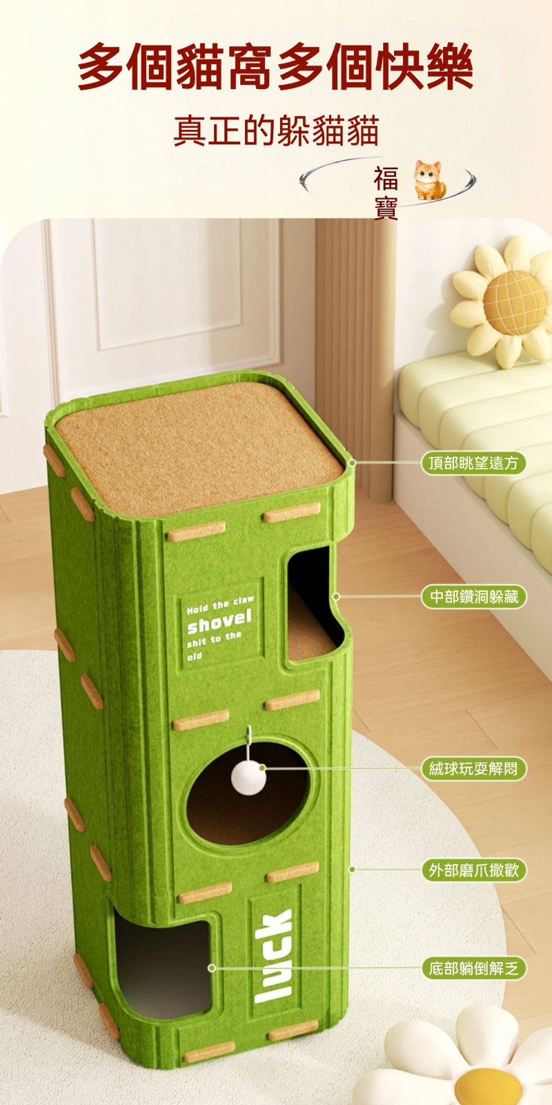 一棟搞定貓生需求!「樹洞貓別墅」三層設計+全身可抓,磨爪、睡覺、眺望全包辦